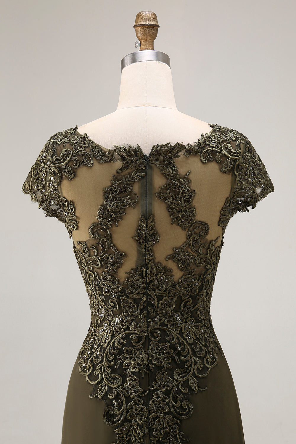 Azeitona Uma Linha Cetim Assimétrica Alta Baixa Mãe do Vestido da Noiva