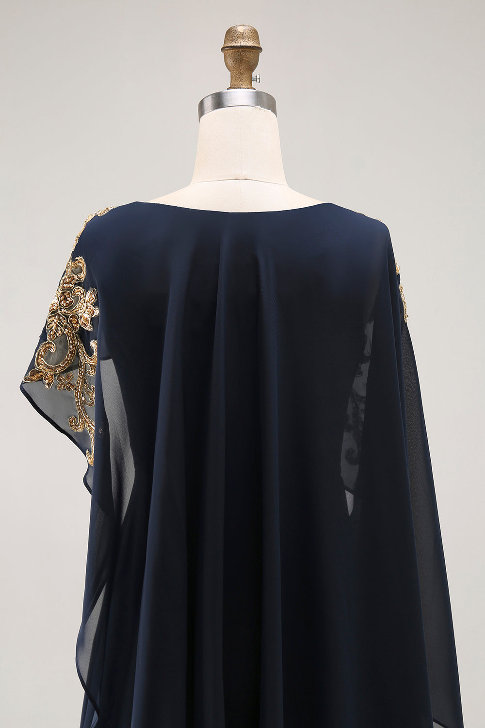 Bainha da Marinha Appliqued Mãe Do Vestido Da Noiva Com Xale