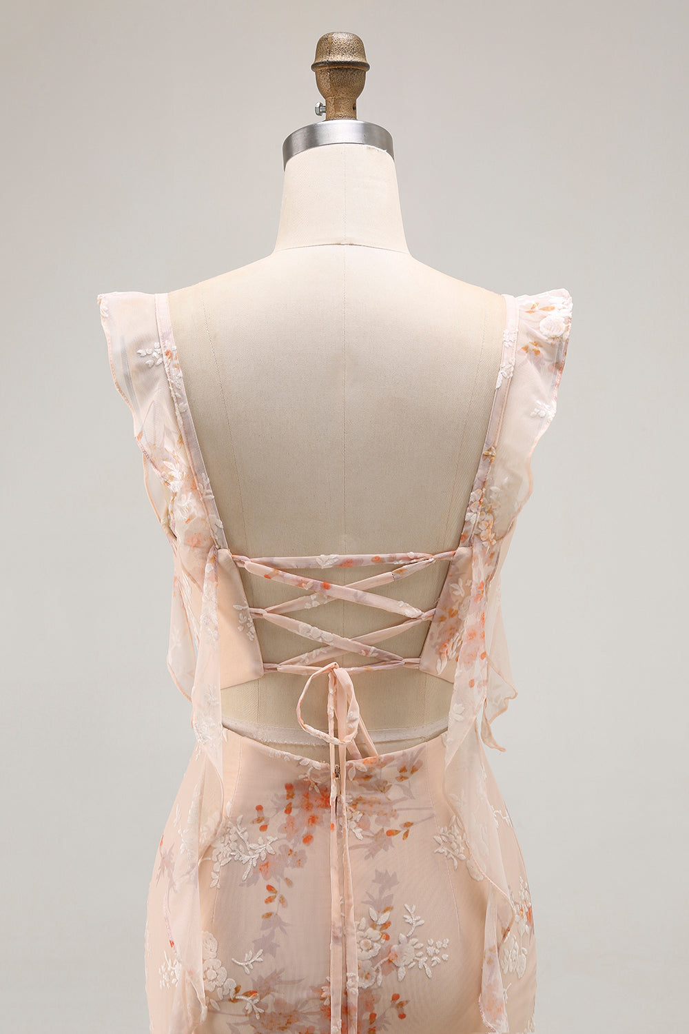Champanhe bainha floral vestido longo da dama de honra com fenda