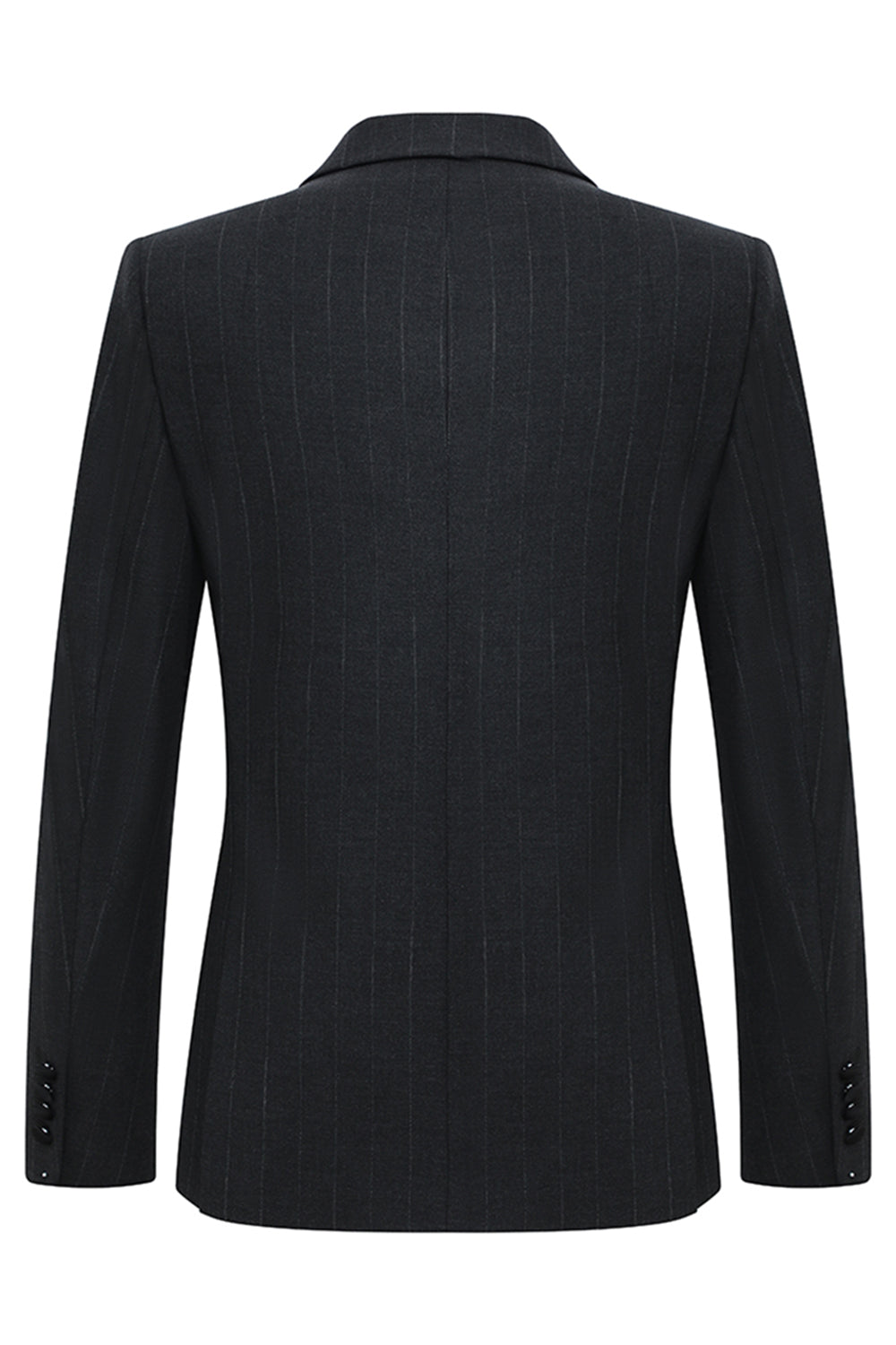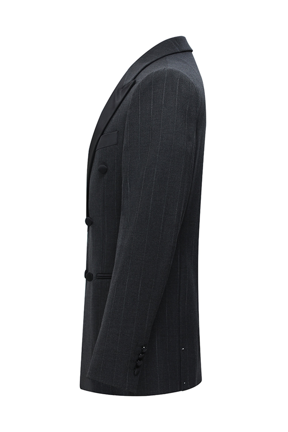 Cinzento Escuro 2 Peças Pico Lapela Peito Duplo Listrado Ternos Masculinos