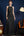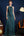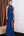 Azul escuro mangas compridas vestido de baile de veludo com fenda