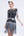 Sparkly cinza pico lapela frisado vestido de blazer de peito duplo