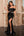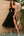 Brilho friso preto pescoço quadrado vestido de baile com fenda