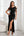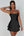 Preto V pescoço apertado frisado vestido de cocktail curto