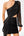 Preto brilhante Um Ombro Uma Linha Vestido de Coquetel Curto