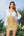 Flor amarela estampada Chiffon A-Line V-neck mangas curtas longo vestido de baile