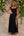 Preto Floral A-Line V Neck Long Prom Dress com cinto