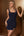 Sparkly Bodycon Pescoço Quadrado Mini Vestido Homecoming Azul Escuro Com Fenda
