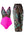 Hot Pink Color Block Criss Cross High Waisted One Piece maisuits com manga de babado