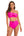 Pink Fuchsia Color Block High Waisted Twist Front Two Piece Swimsuits