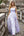 Flor azul branca Um vestido de baile longo linha com mangas babadas