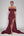 Vestido de Baile com Fenda Cabernet Fora do Ombro Cetim Longo