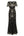 Flor preta bordada sereia vestido de baile com fenda lateral