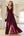 A-Line Cold Shoulder Borgonha vestido formal com fenda