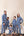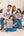 Blue Printed Lapel Neck Mulheres Casaco de Natal