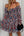 Preto Fora do Ombro Estampado Mangas Compridas Vestido de Verão