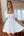 Branco Pescoço Quadrado Mini Vestido de Formatura Mangas Curtas
