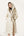 Casaco pele falsa lapela shawl branco e castanho Midi