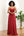 Um vestido vintage vermelho de pescoço v linha com mangas curtas