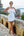 Lã camelo duplo peito lapela dentada longo casaco com cinto