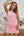 Vestido de regresso a casa de lantejoulas cor-de-rosa com penas
