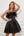 Vestido de homecoming curto de lantejoulas pretas com folhos