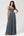 Navy Bat mangas Chiffon vestido formal com fenda