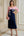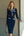 Navy Cetim Notched Lapela Lápis Midi Trabalho Blazer Vestido com Mangas