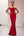 Cetim vermelho simples sereia sem alças vestido de noite longo
