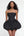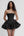Corset A-Line Strapless Cetim Vestido Preto com Folhos
