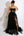 Preto A-Line V Pescoço Sequins mangas curtas longo vestido de baile