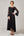 Preto Decote em V Mangas Curtas Vestido de Verão