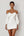 Vestidinho Branco com Arco Cetim Fora do Ombro Bodycon Curto/Mini Mangas Compridas