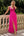 Vestido Mae Noiva com Mangas Curtas Fúcsia Linha-A Midi Cetim