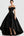 Vestidos Cerimónia Linha-A Midi Preto Branco Cetim Pescoço de Barco