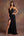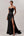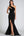 Vestidos Cerimónia com Fenda Preto Cetim Longo Decote em V Bainha