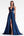 Brilhante Marinha Linha-A Lantejoulas Longo Vestido De Baile com Fenda