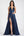 Marinha Decote em V Cetim Longo Vestido De Baile com Fenda