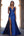 Linha-A Azul Real Lantejoulas Decote em V Longo Vestido De Baile com Fenda