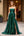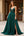 Verde Escuro Linha-A Pescoço Quadrado Longo Vestido De Baile