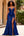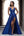 Linha-A Azul Real Decote em V Lantejoulas Longo Vestido De Baile com Fenda