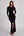 Cetim Preto Pescoço de Barco Sereia Mangas Compridas Vestidos Cerimónia com Fenda