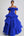 Azul Real Linha-A Tule Renda Longo Decote em V Vestido de Baile