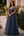 Marinha Pescoço Quadrado Cetim Longo Vestidos Cerimónia