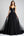 Uma linha de alças espaguete babado vestido de gravata preta em camadas