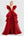 Red A Line Folhos Mangas Voadoras Vestido Formal Longo