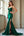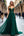 Verde escuro Uma linha de renda V pescoço cetim longo vestido de baile