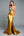 Golden A Line Deep V-Neck Backless Ruched Prom Dress