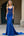 Sereia Azul Cetim V Pescoço Vestido de Baile com Fenda