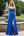 Halter Sereia Blue Satin Prom Vestido com Fenda